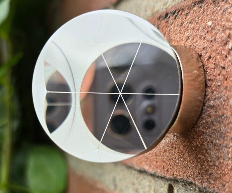 Hoekgetrouw. In tegenstelling tot de meeste andere prisma's hoeft deze bol, net als de CornerCube prisma's, niet per se exact naar het total station gericht te worden.