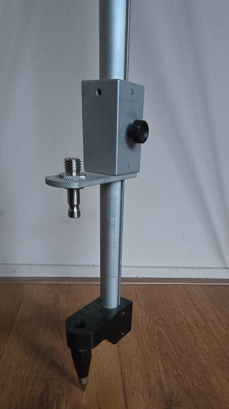 In hoogte verschuifbaar en daarmee een ideale uitzetstok voor maatvoerders,