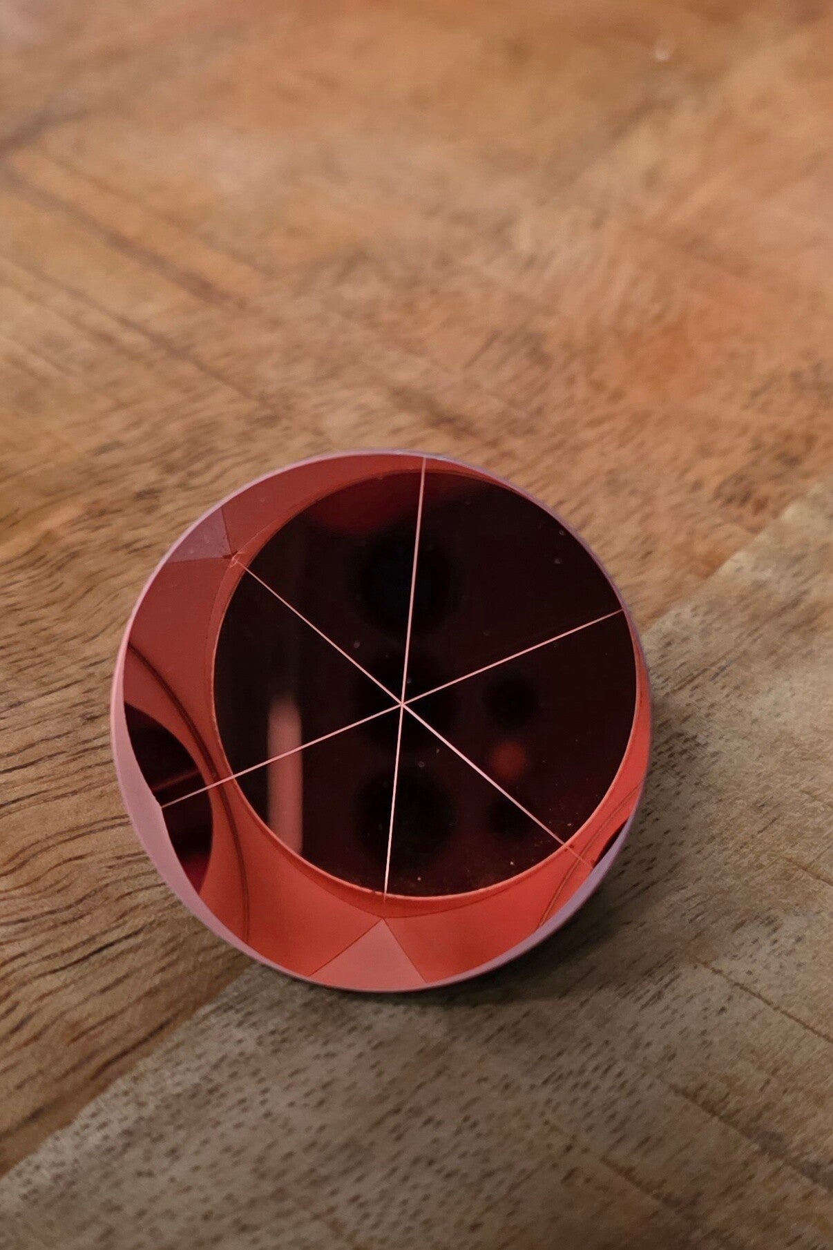 ☝️De prisma's kunnen op de potmagneet in de gewenste richting gedraaid worden. Zodra echter een coordinaat is bepaald, mogen de prisma's niet meer gedraaid worden. Deze eigenschap heeft alleen de SMC, de Spherical Mounted CornerCube.